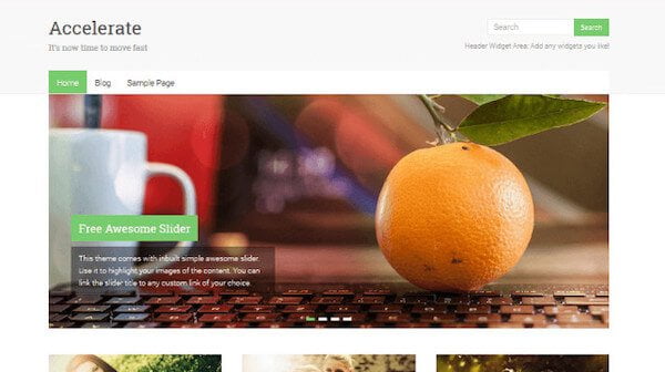 If you’re new to web design, Accelerate is for you! This blog theme is simplicity made over. While it is customizable of course, there are little to no additional features. From personal to business blog, this theme would be a great place to start.